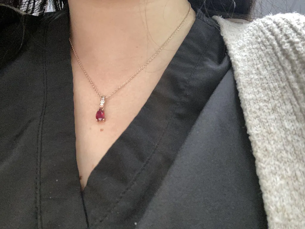 I love this pendant it’s one of my favorite jewelry pieces to wear. It has small details like the small topaz on the clasp.