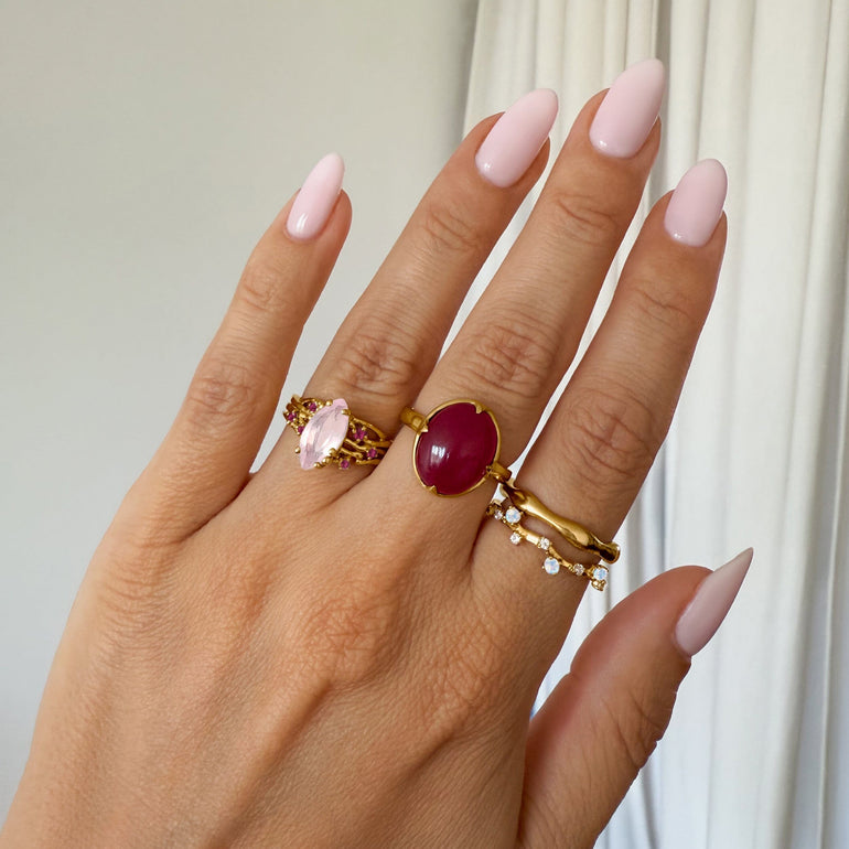 With its smooth, blush-toned cabochon, Pink Quartz gently nudges you back to self-love and emotional clarity. Designed to soften your edges and brighten your aura.