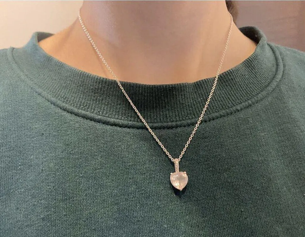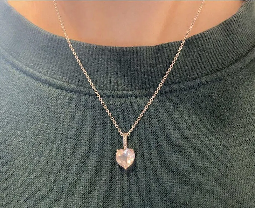 The heart-shaped stone on my necklace looks stunning and goes with everything I wear, and the length of the chain is perfect and convenient for layering other necklaces. It’s simplicity makes it easy to layer other necklaces with it but also looks gorgeous on its own. I love the heart shape and the color of the rose-quartz, and its elegance and soft beauty honestly make me feel like a princess whenever I wear it.