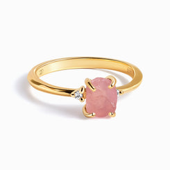 - Stone Shape: Raw & untreated Rose Quartz, round-shaped lab Diamonds in brilliant cut